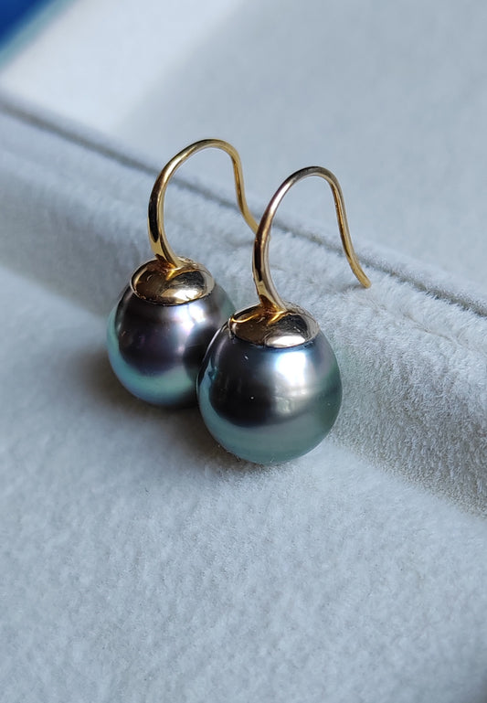 12.95x13.5mm Genuine Tahitian Mangareva pearl 18k gold diamond enhancer/ pendant
