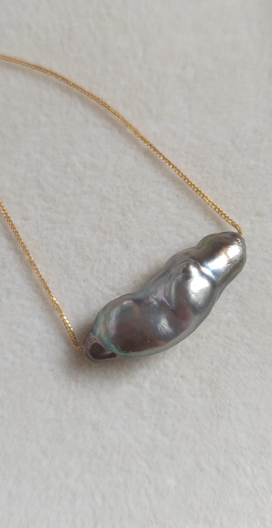 12.95x13.5mm Genuine Tahitian Mangareva pearl 18k gold diamond enhancer/ pendant
