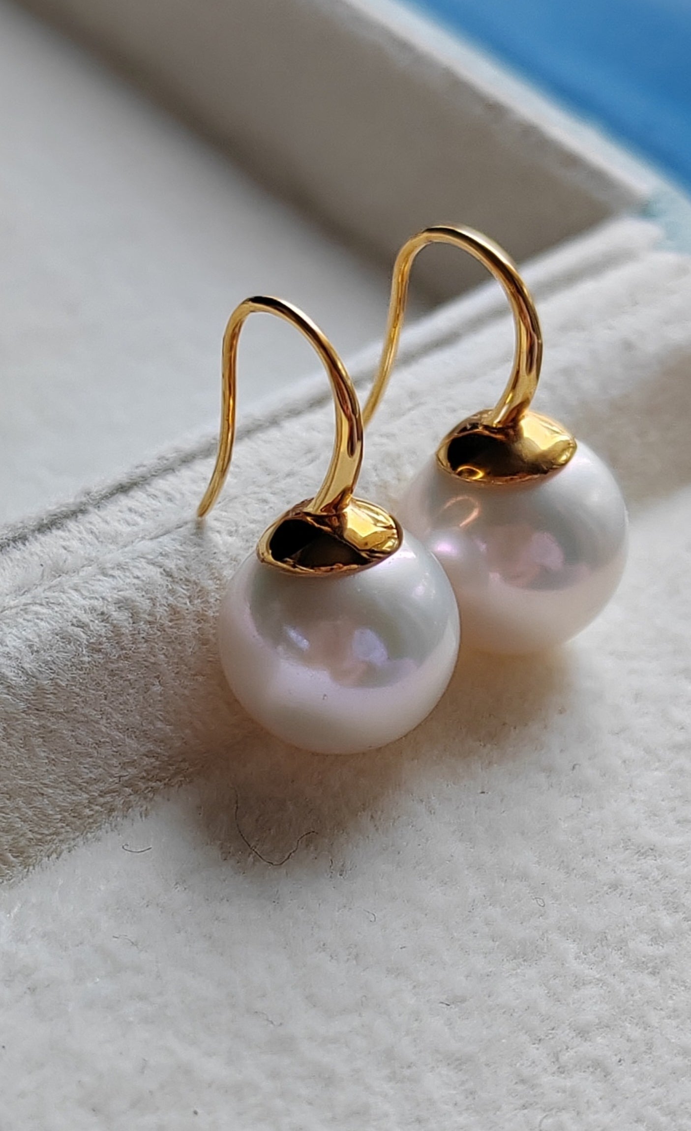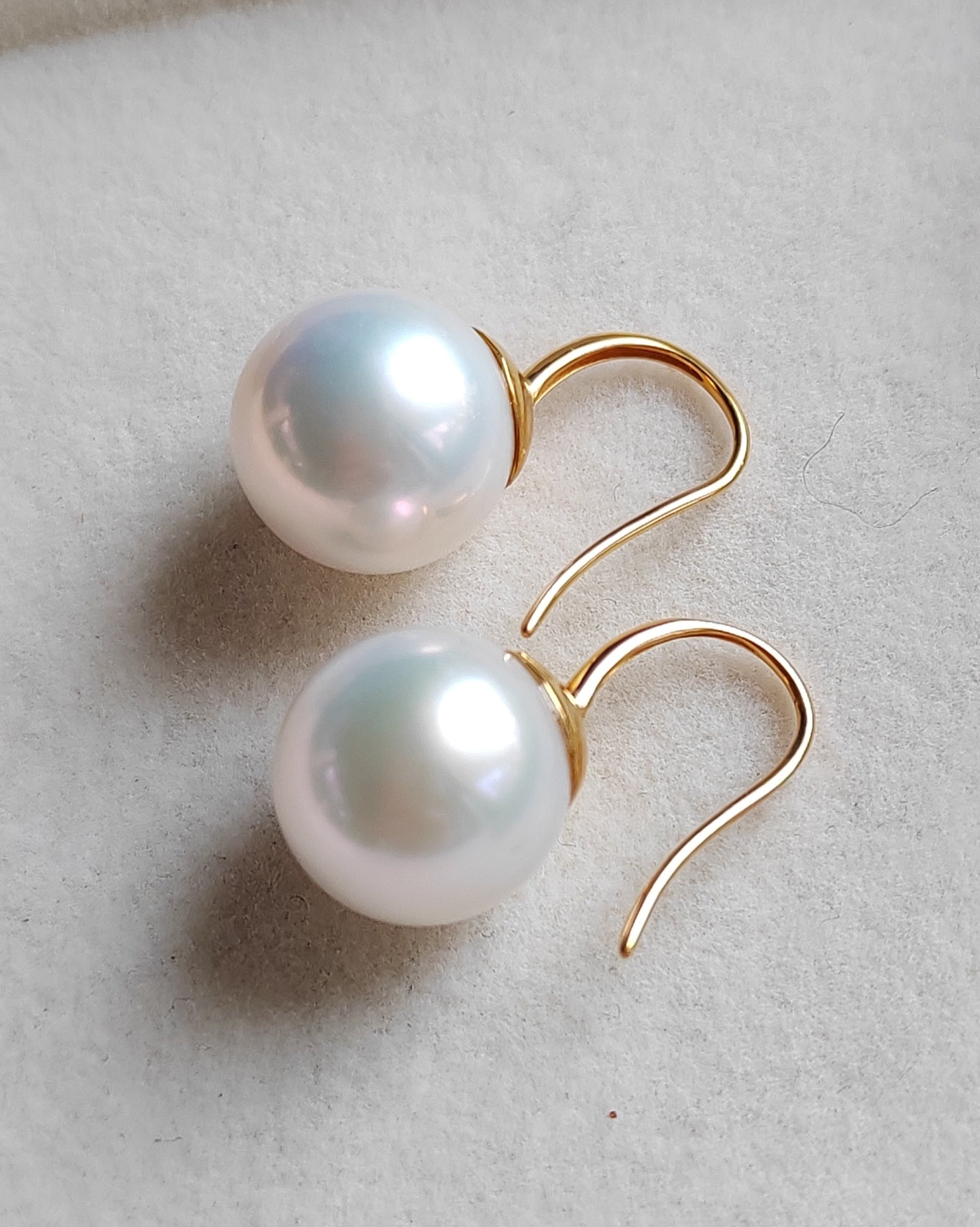 11.3mm genuine freshwater pearls 9k gold French hook earrings AAAA