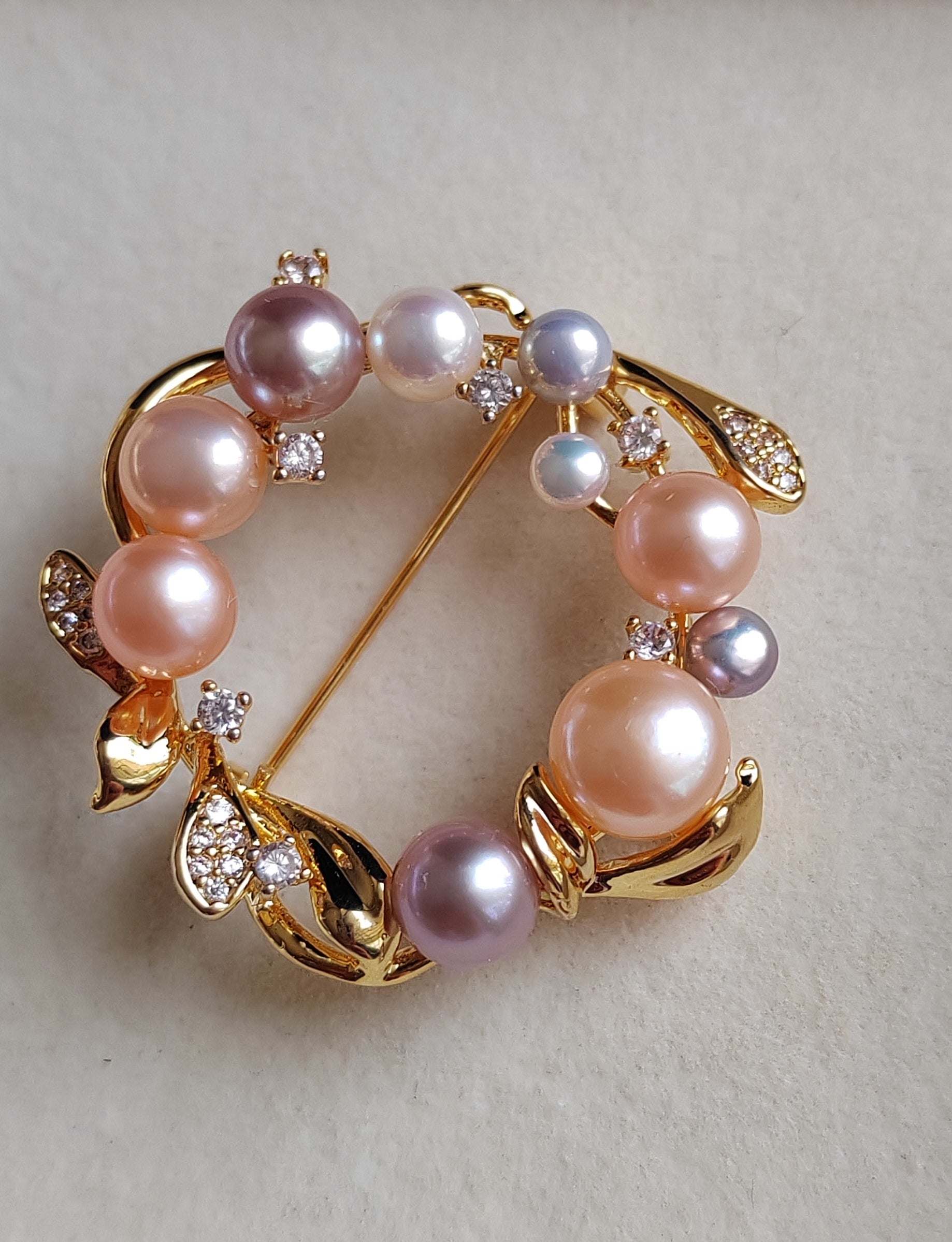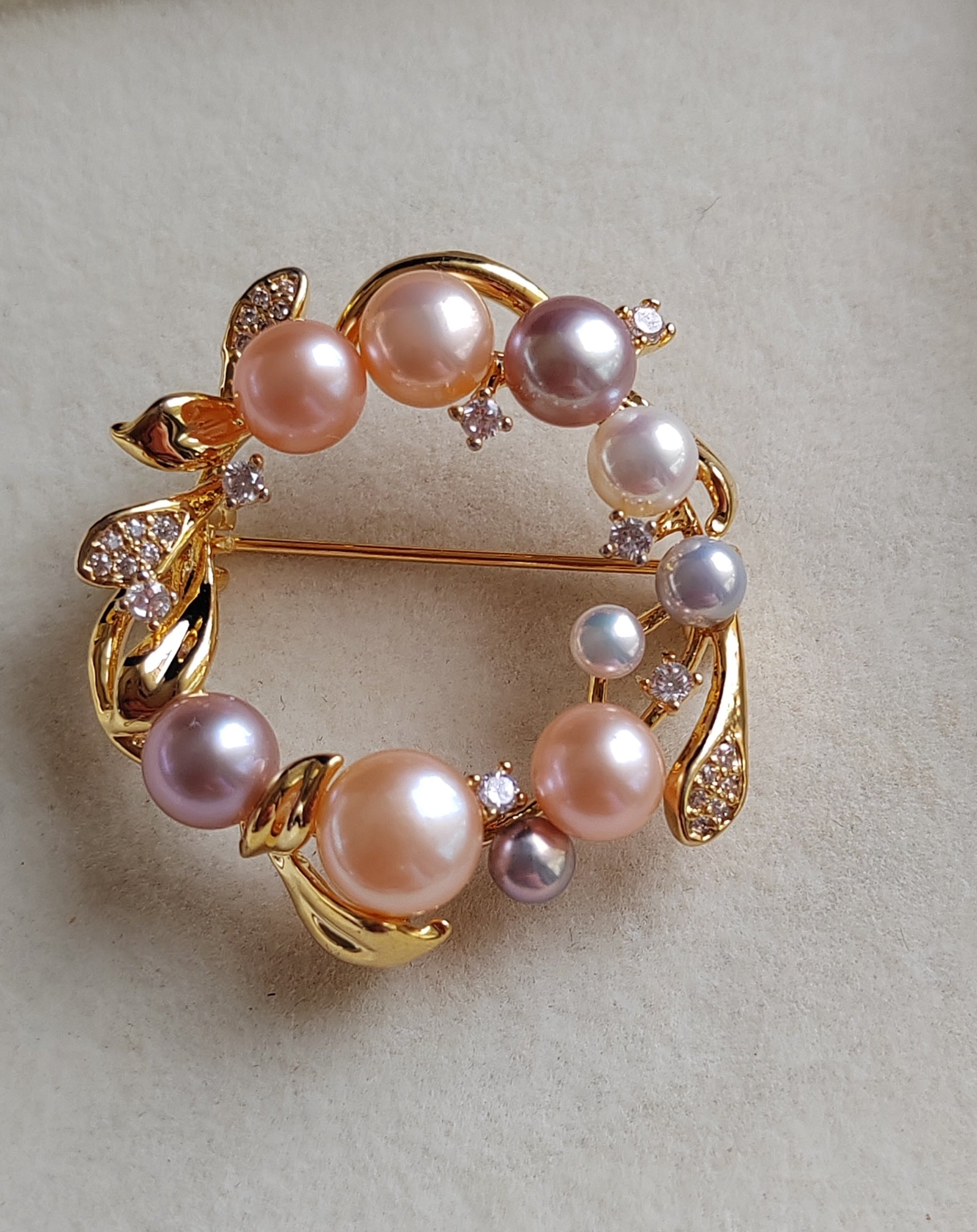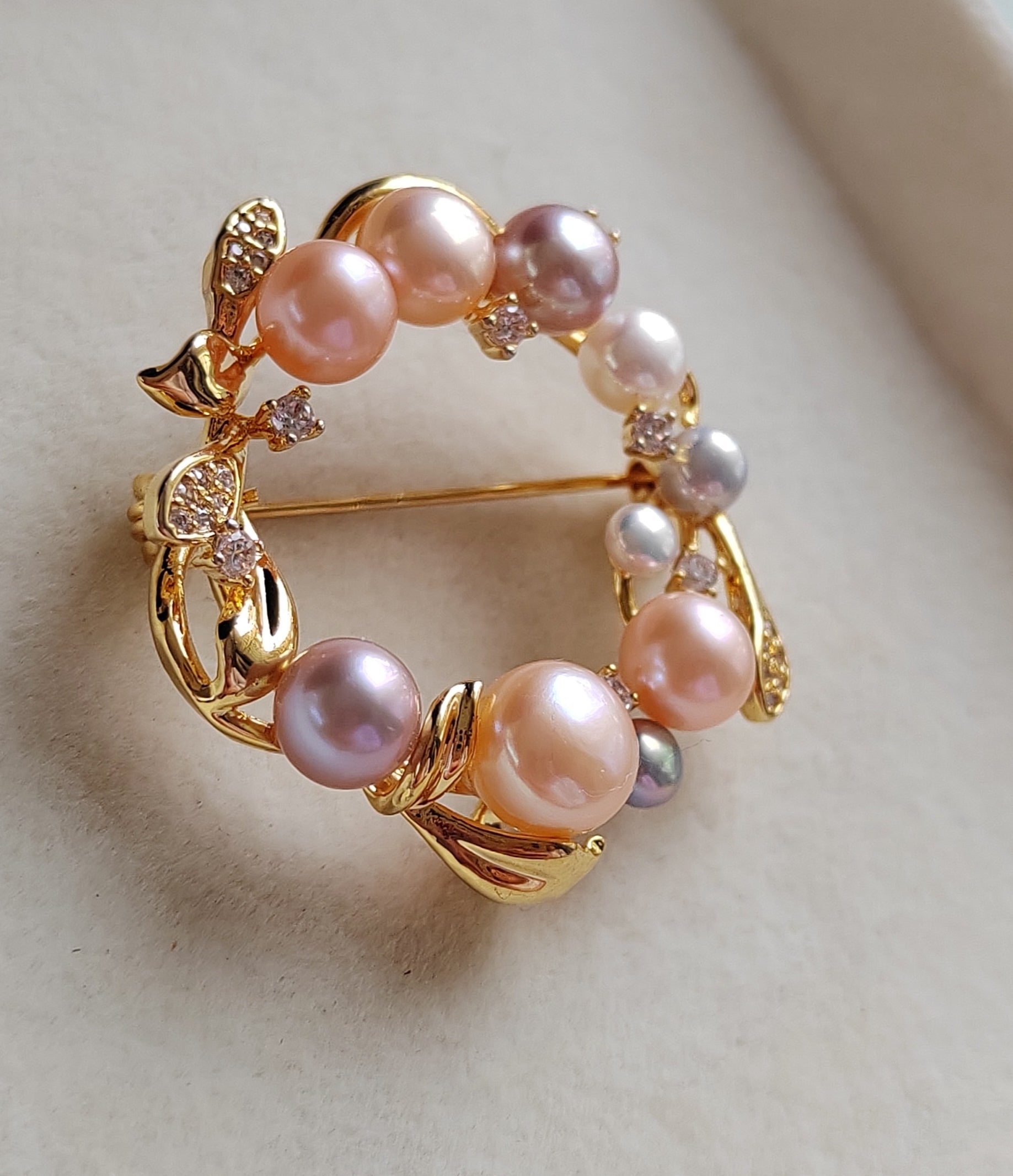 3.5-7.6mm Genuine freshwater pearls multicolour flower brooch