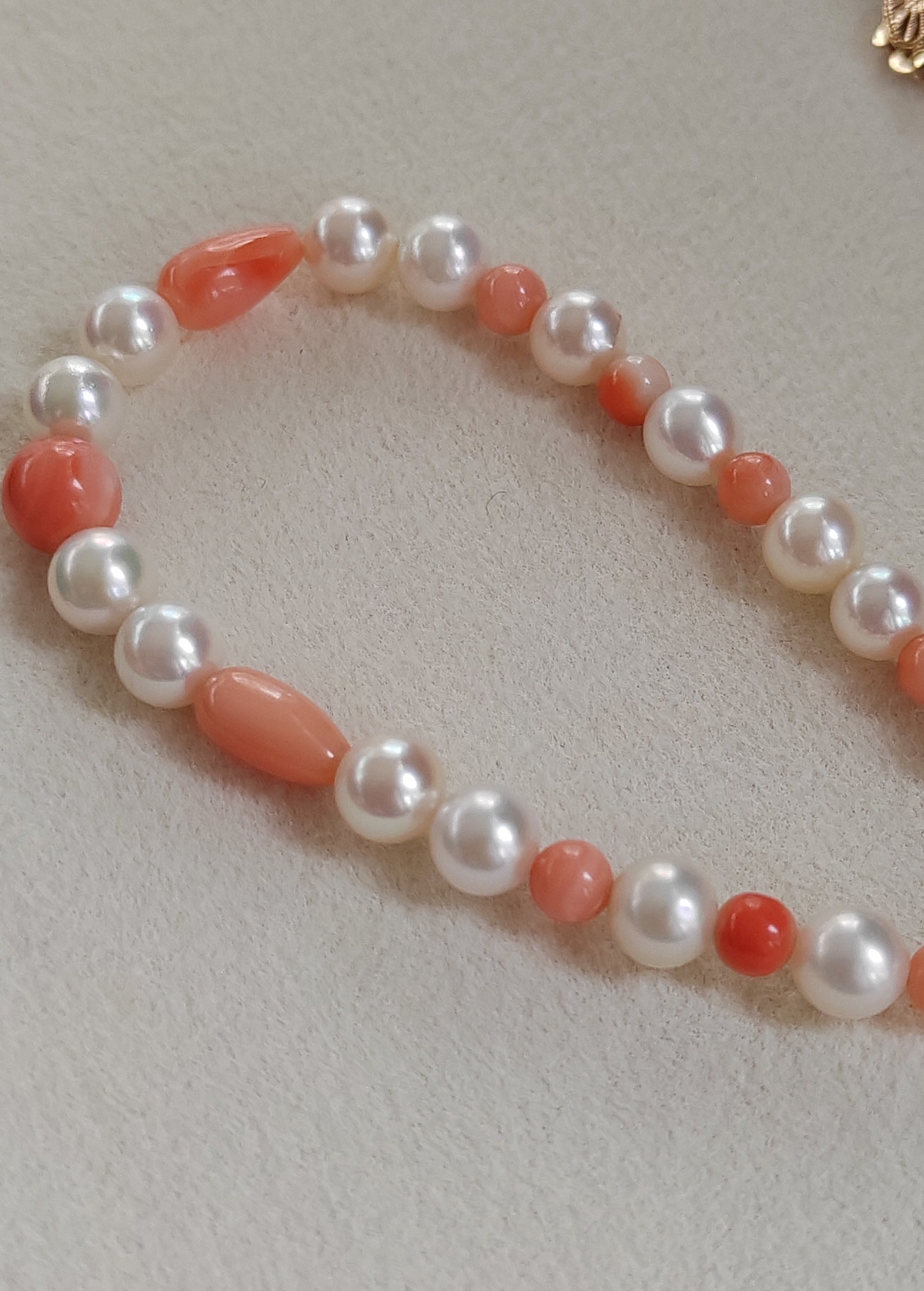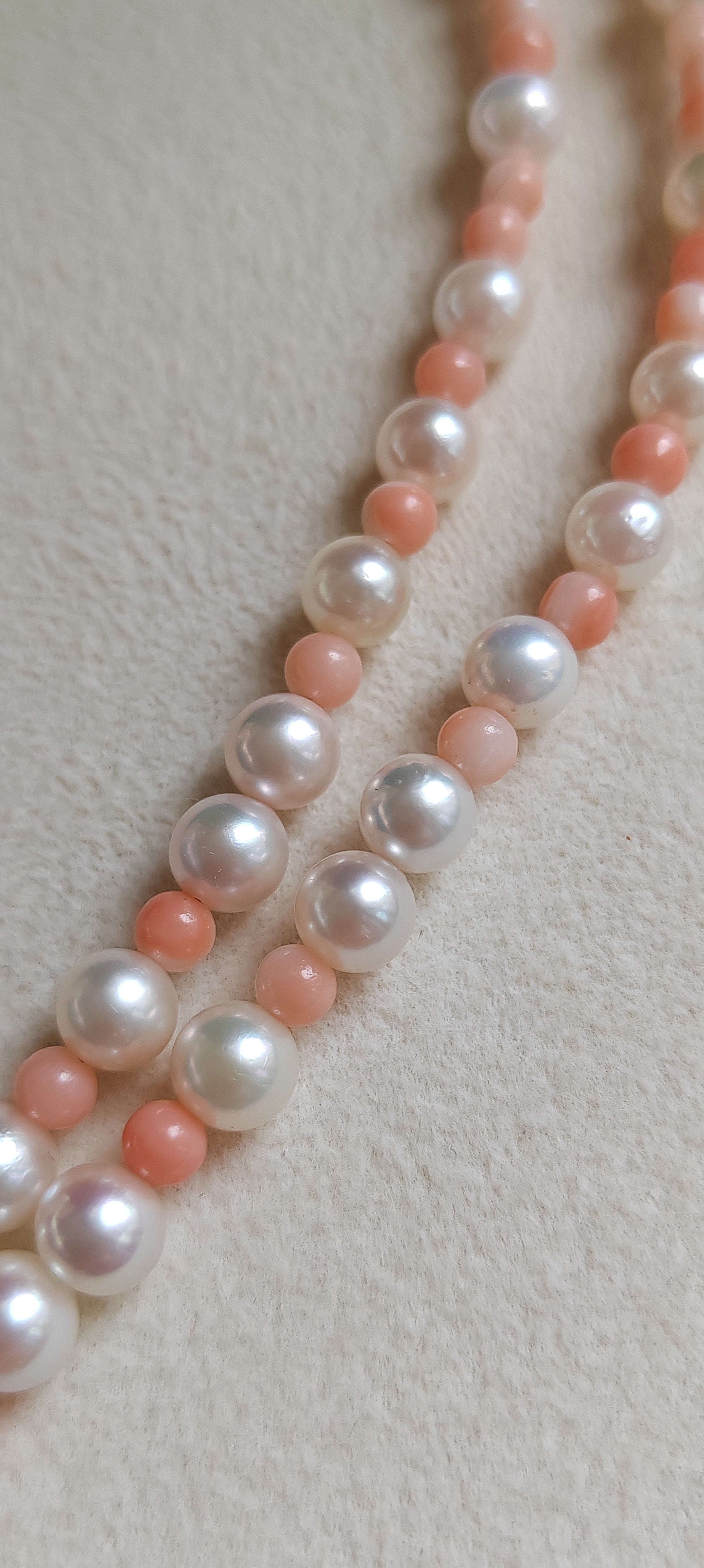 Genuine Japanese akoya pearls and coral necklace 3.3-7.7mm
