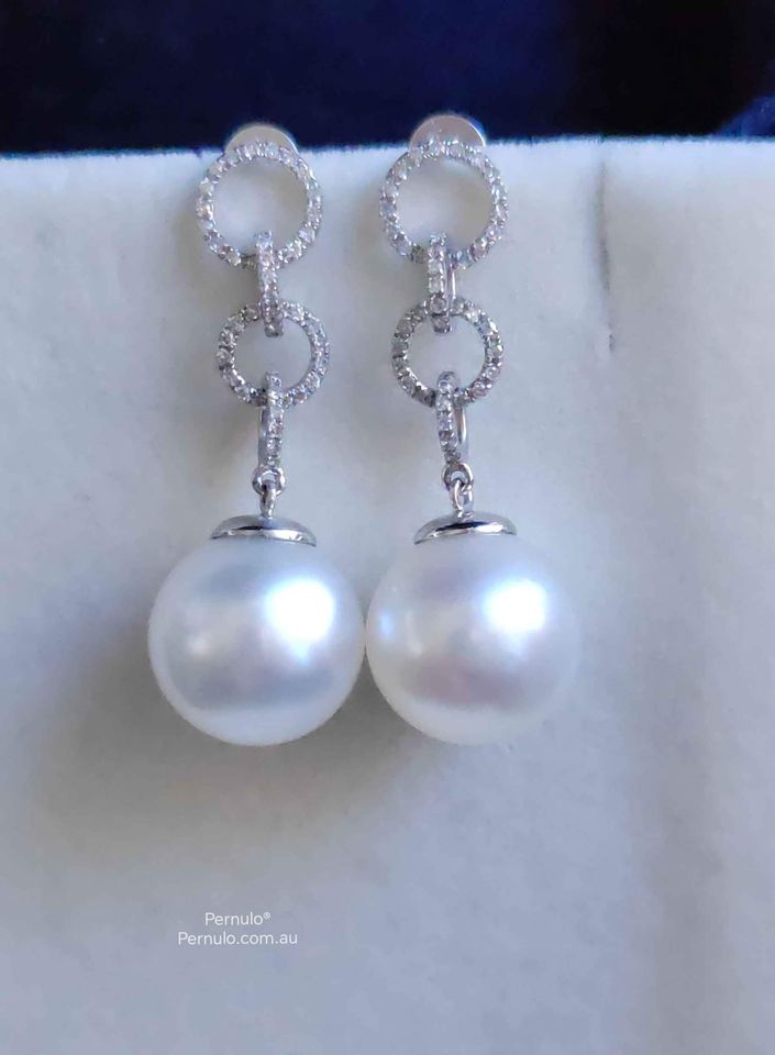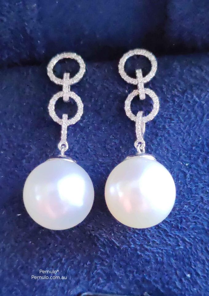 'La perfection' earrings 18k white gold diamonds genuine south sea white pearls 12.4mm AAA+