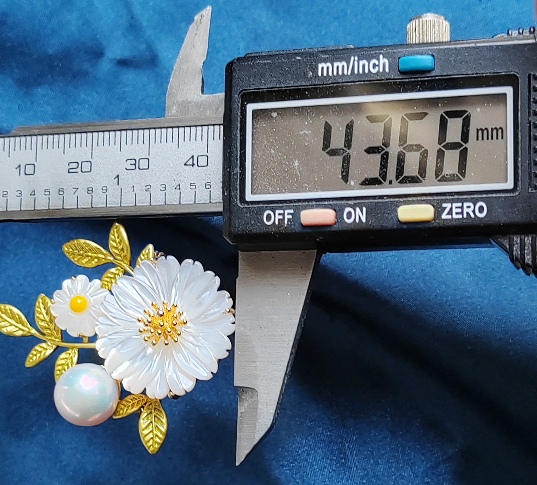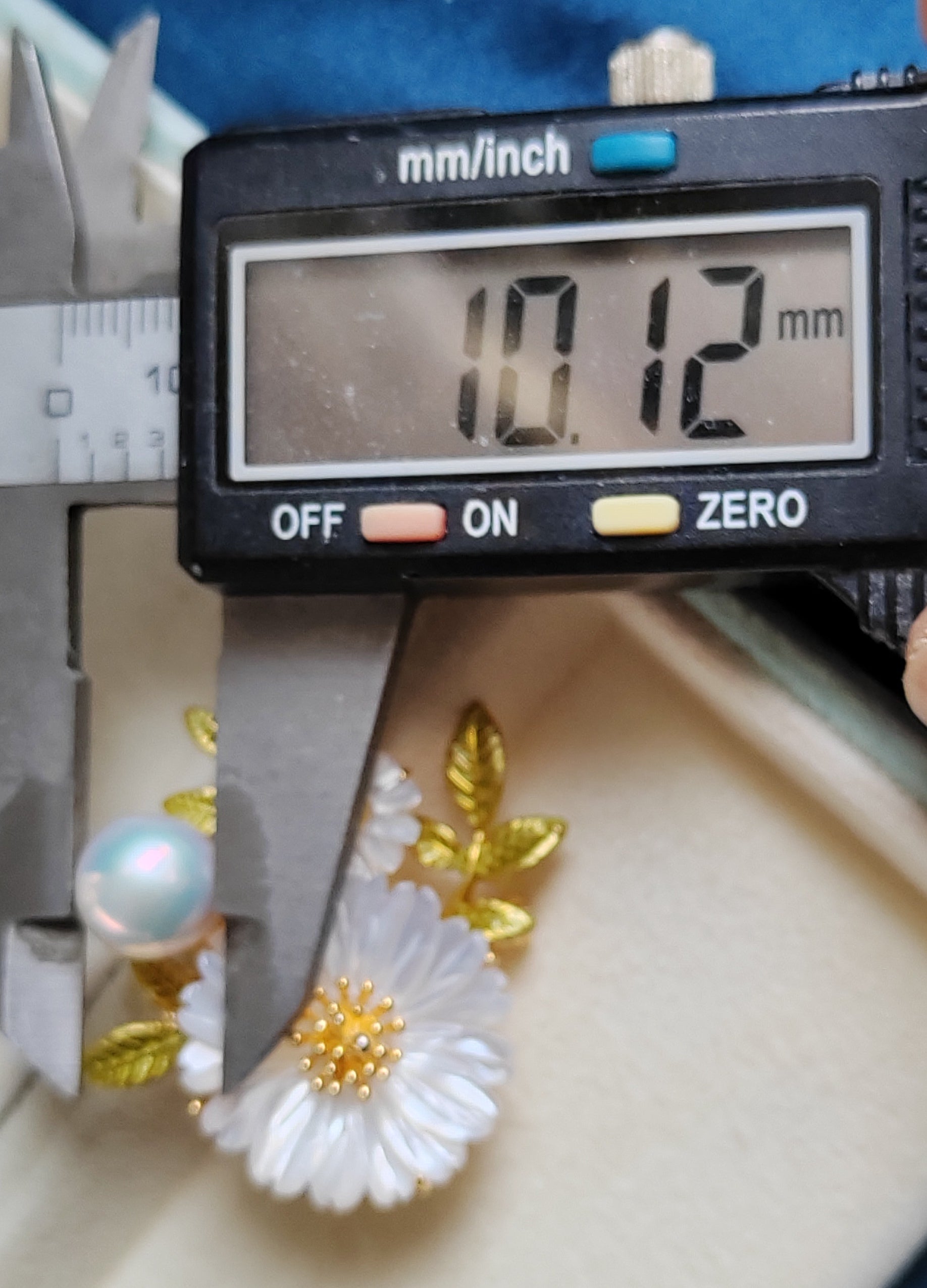 'Lily' brooch genuine freshwater pearl 10.1mm with mother of pearl
