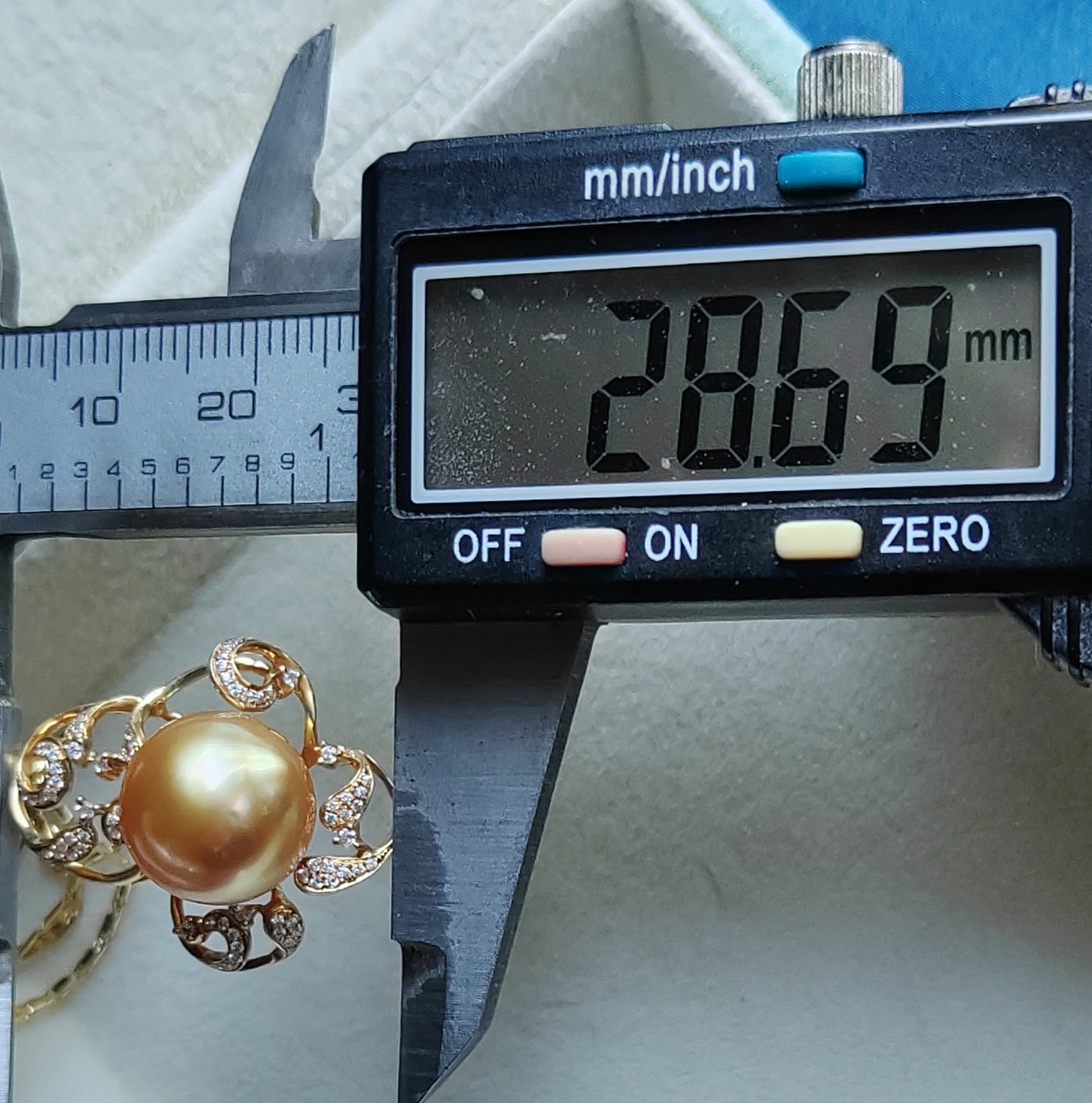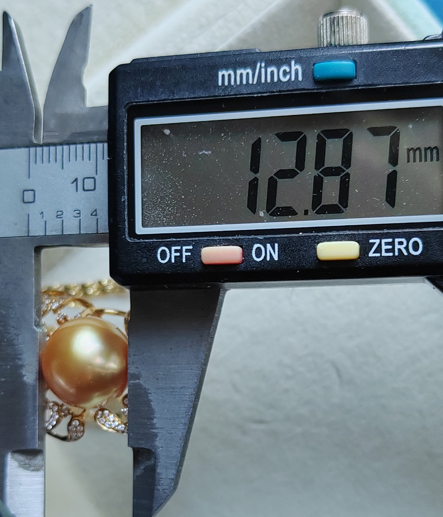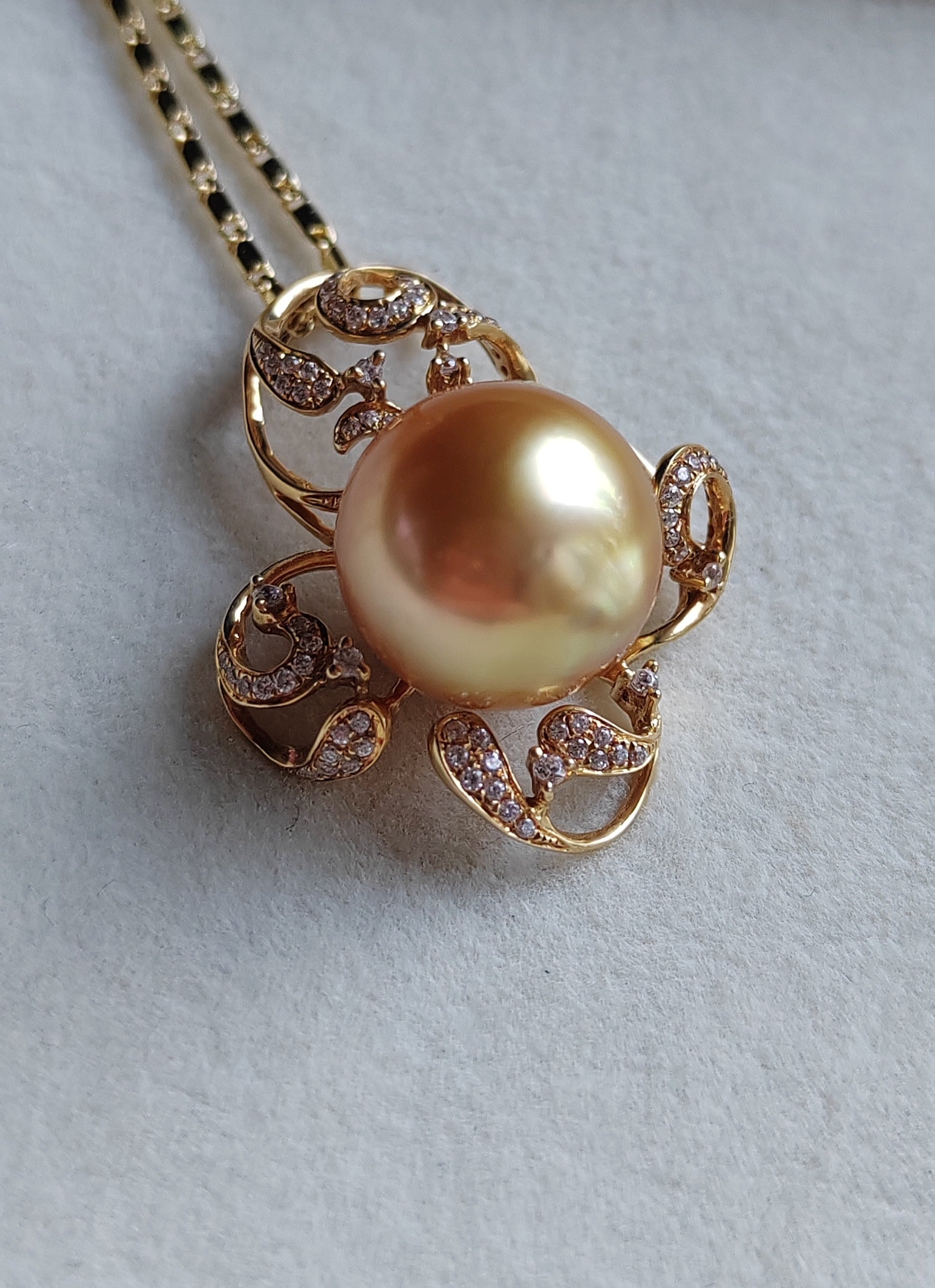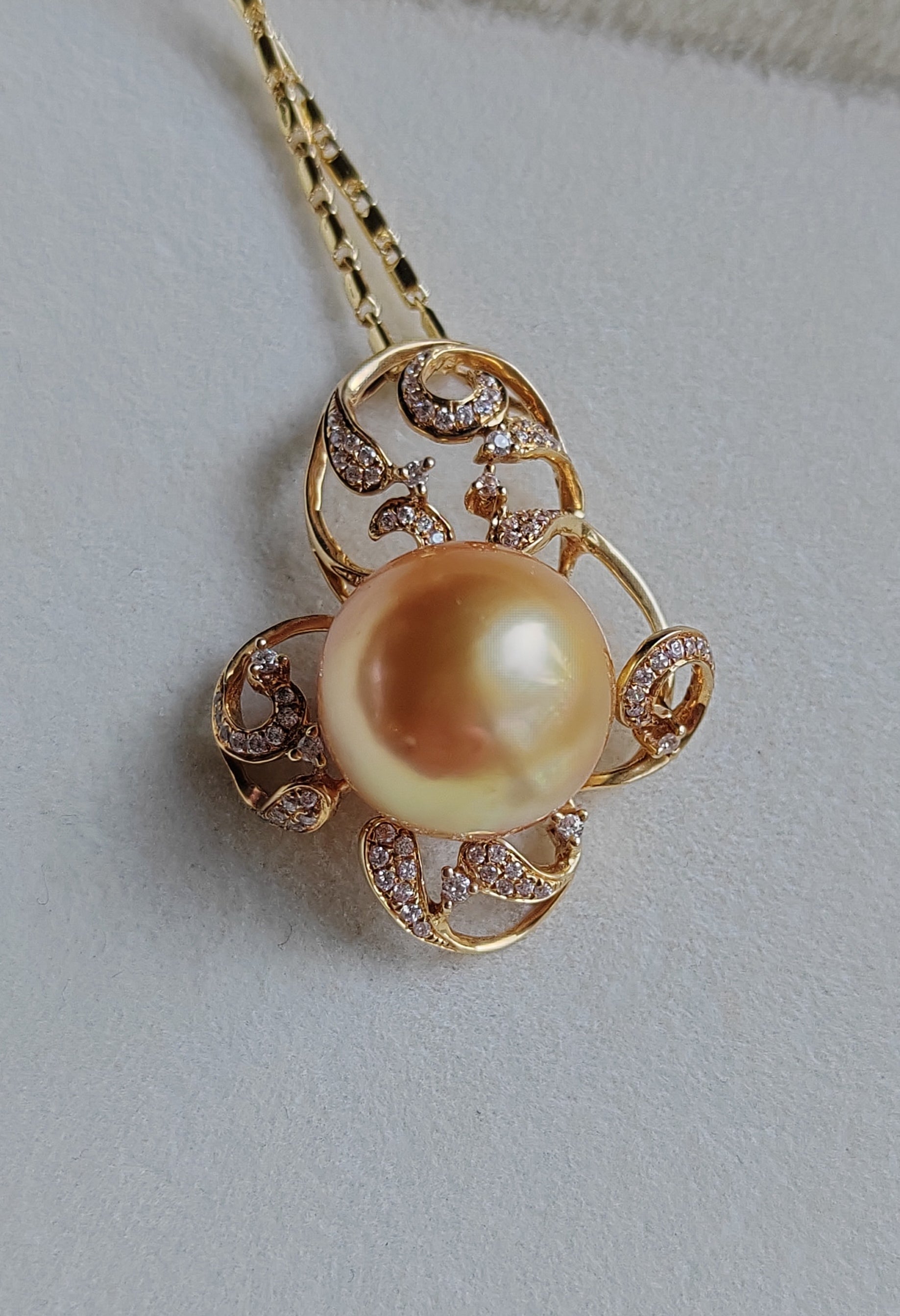 'Rococo' 14k gold pendant genuine golden south sea pearl 12.8mm Round