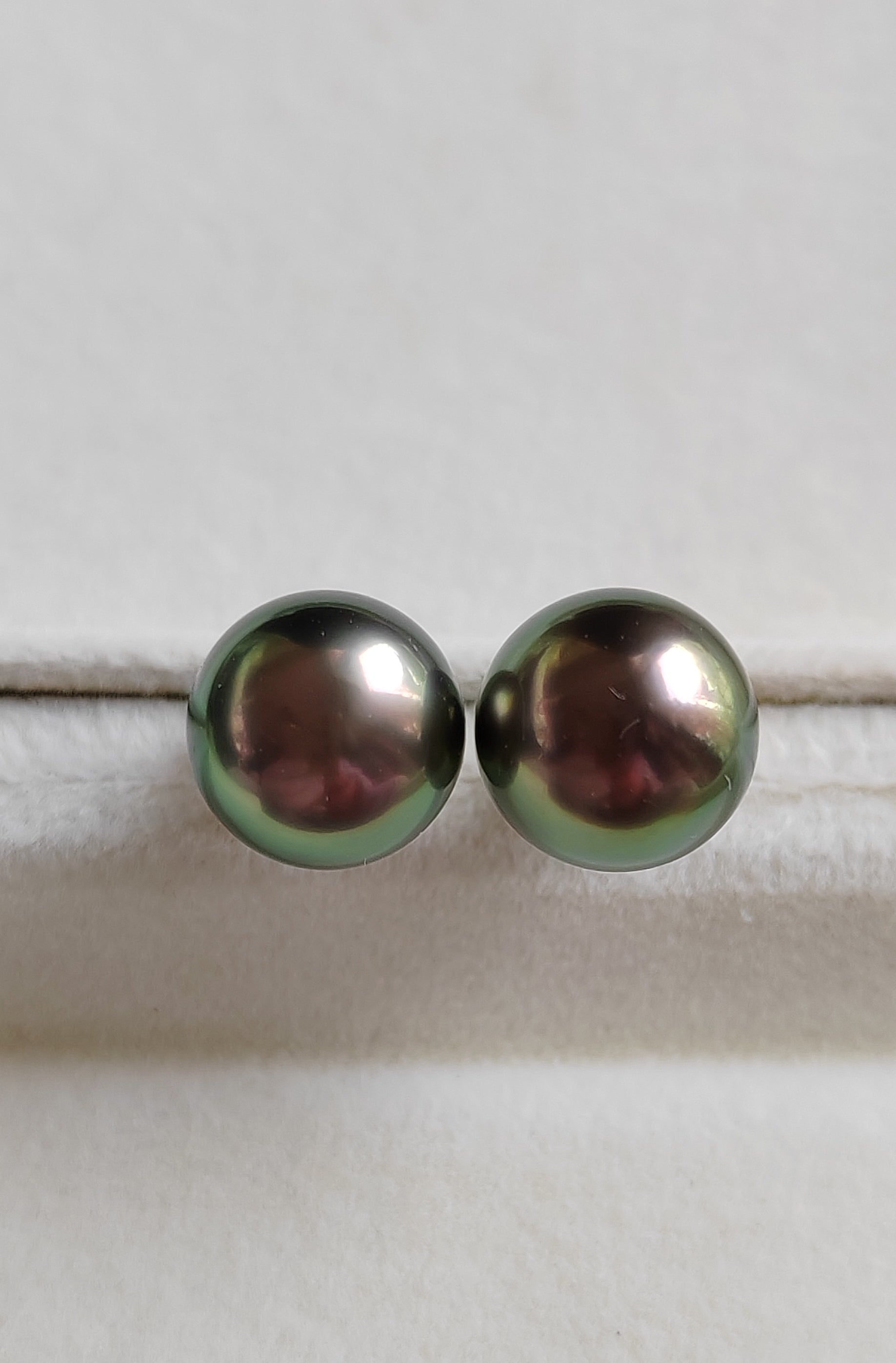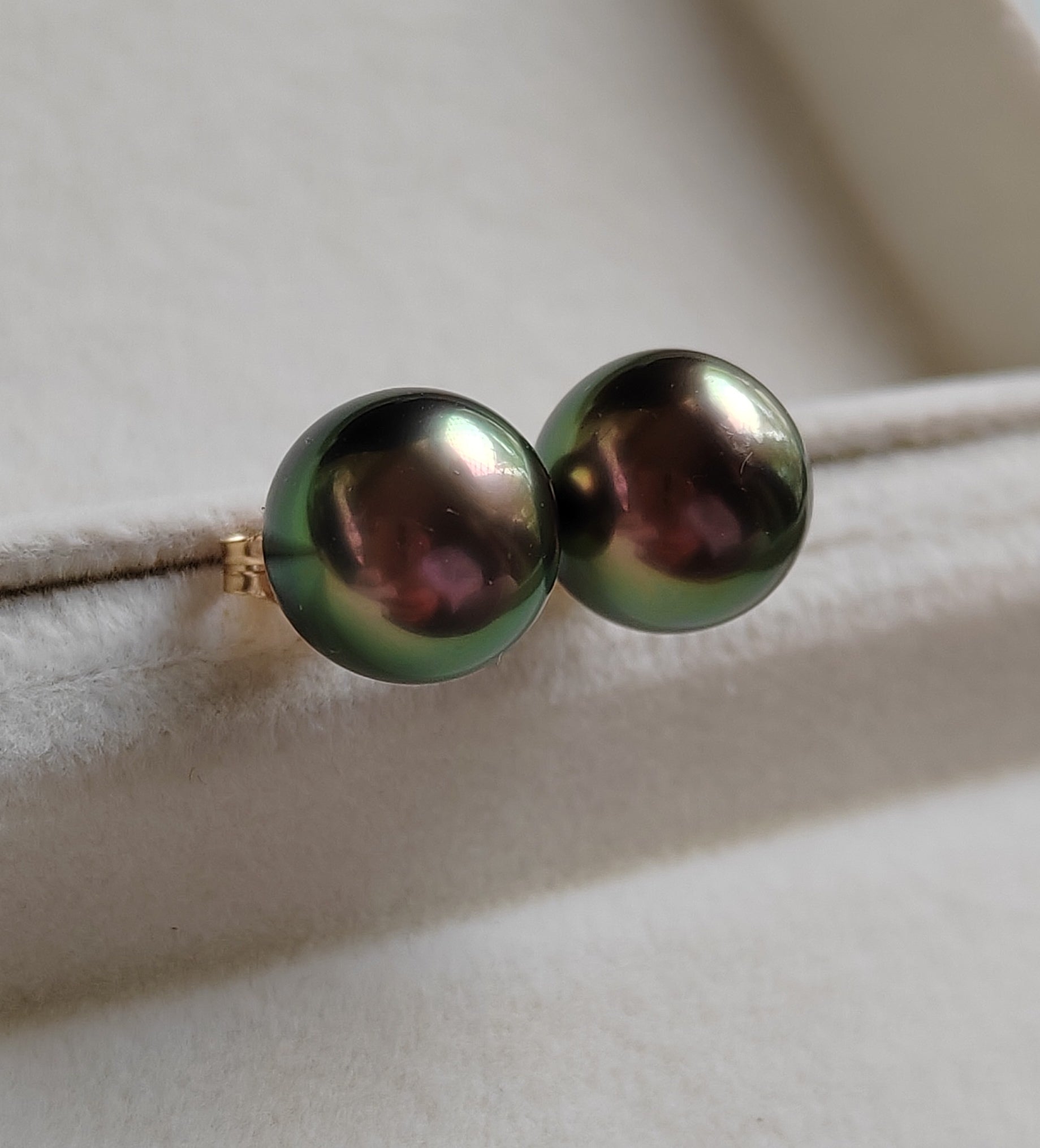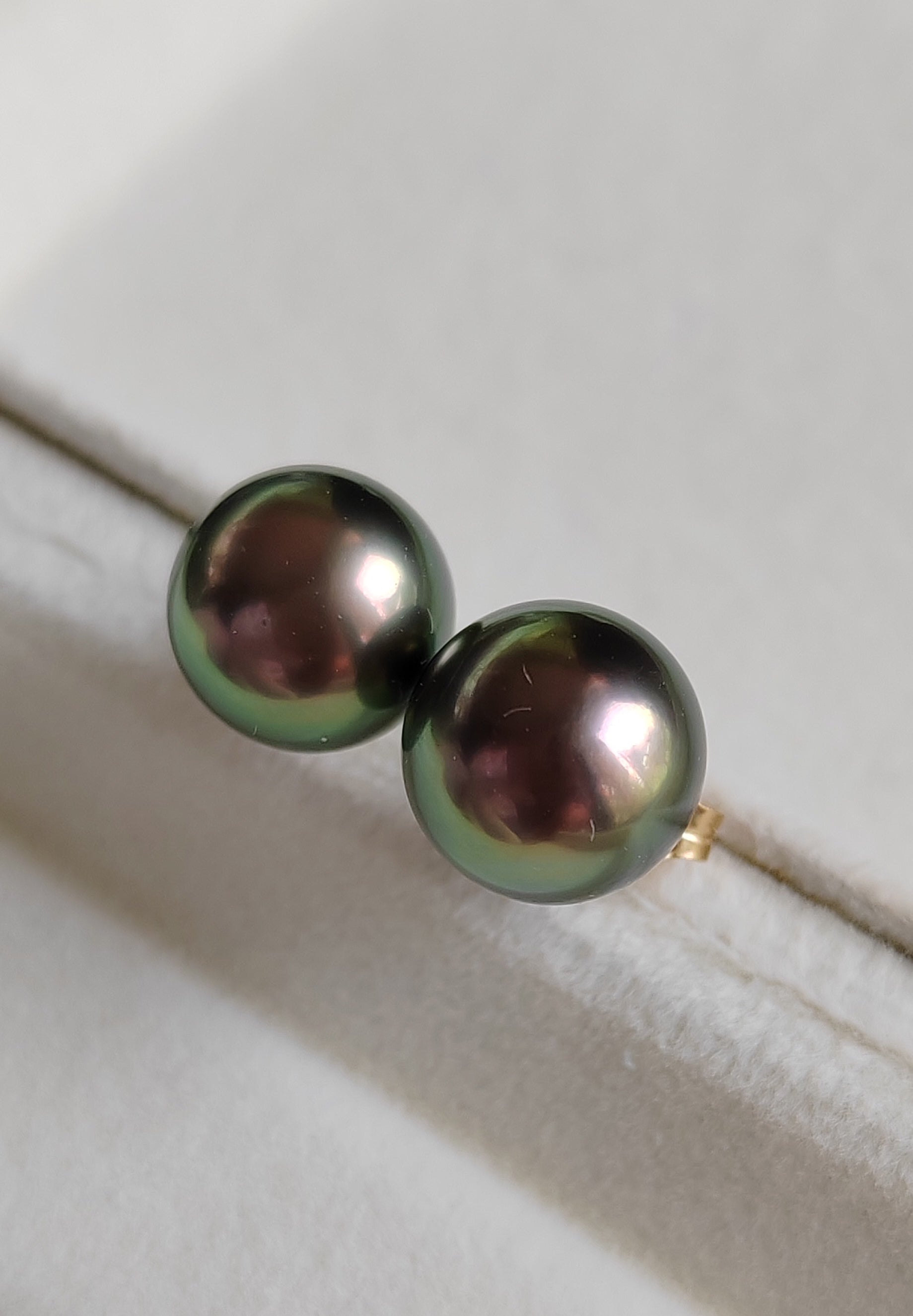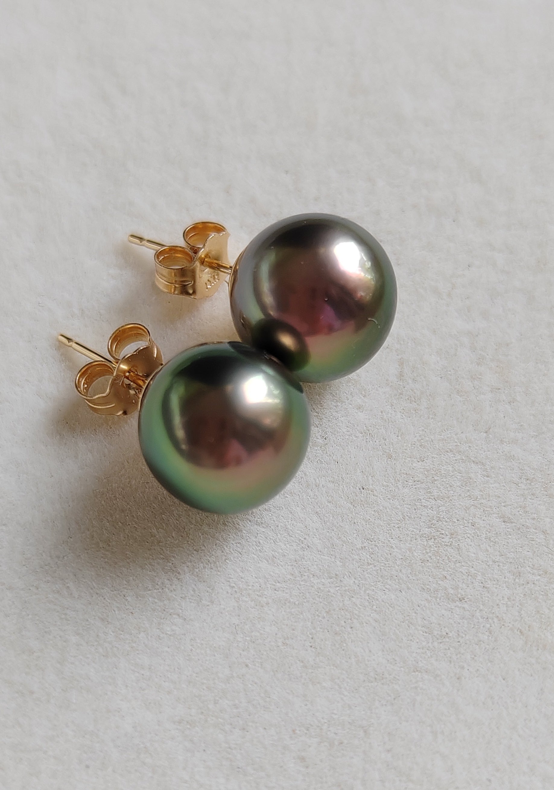'Vivid Peacock' 14k gold every day earrings studs genuine tahitian south sea pearls 10.2mm